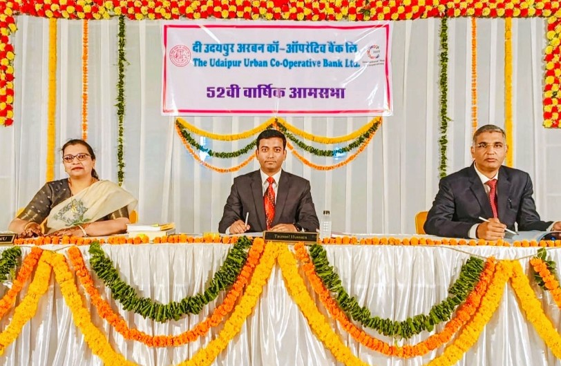 उदयपुर। दी उदयपुर अरबन को-ऑपरेटिव बैंक लि. उदयपुर की 52 वीं वार्षिक आम सभा आयोजित की गई जिसमें पूर्व अध्यक्ष एवं बड़ी संख्या में बैंक के सदस्यों ने भाग लिया जिसमें मोहन पाराशर, अध्यक्ष दी राजस्थान अरबन को-ऑपरेटिव बैंक्स फेडरेशन लि. और एम. एल. शर्मा, मुख्य कार्यकारी अधिकारी दी राजस्थान अरबन को-ऑपरेटिव बैंक्स फेडरेशन लि. थे।