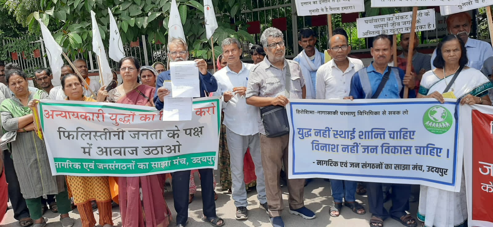 उदयपुर। युद्ध मूलतः मानवता विरोधी व पर्यावरण विरोधी होता है। ये विचार नागरिक तथा जन संगठनों के साझा मंच द्वारा हिरोशिमा दिवस पर आयोजित रैली के बाद जिला कलेक्ट्री के बाहर संपन्न आमसभा में उभर कर आए।